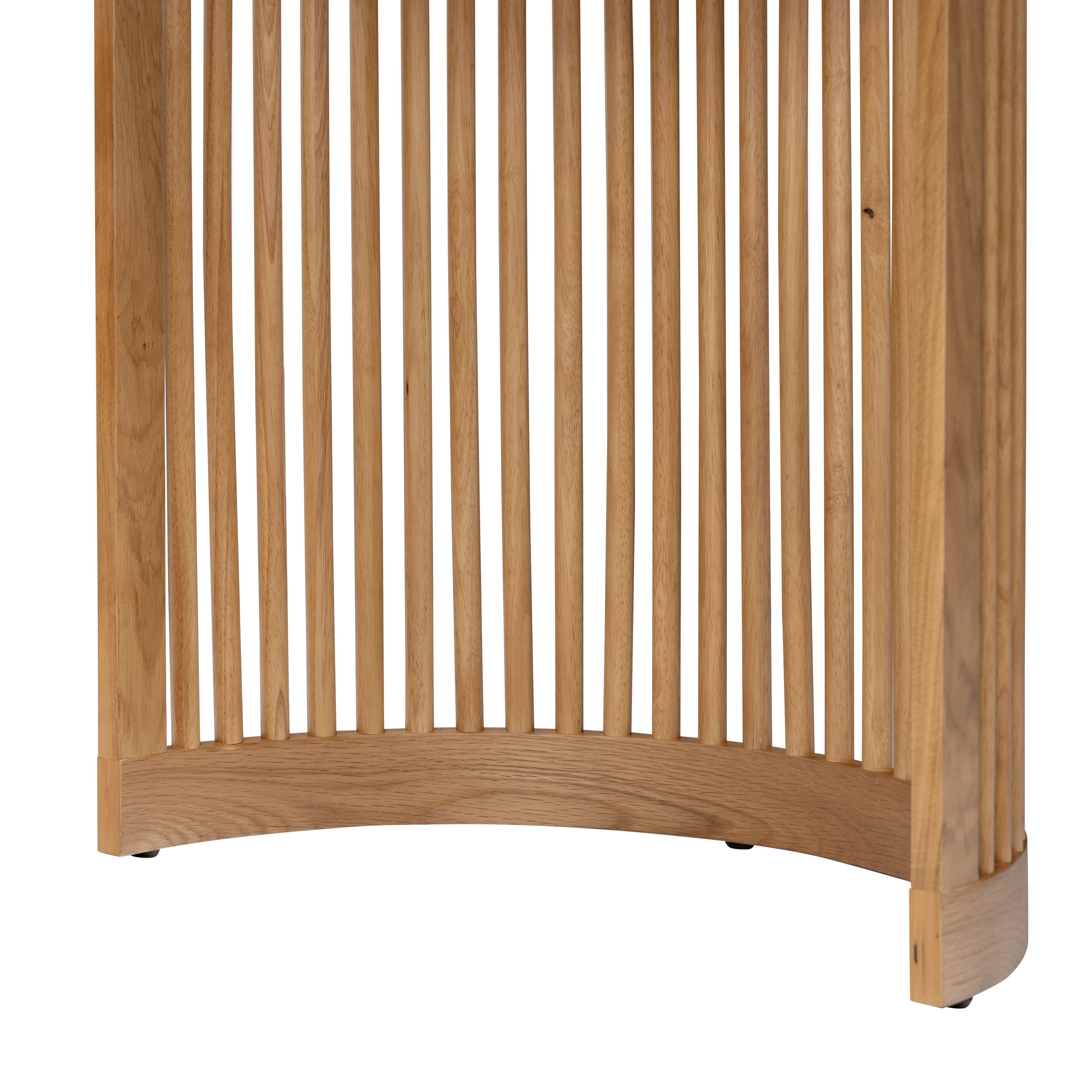 Expertly crafted, this Oval Slatted Dining Table boasts a beautiful design that will add elegance to any dining room. Its unique shape allows for more intimate conversations and creates a perfect setting for making memories with loved ones. Finished with precision, this table will be the centrepiece of any gathering.