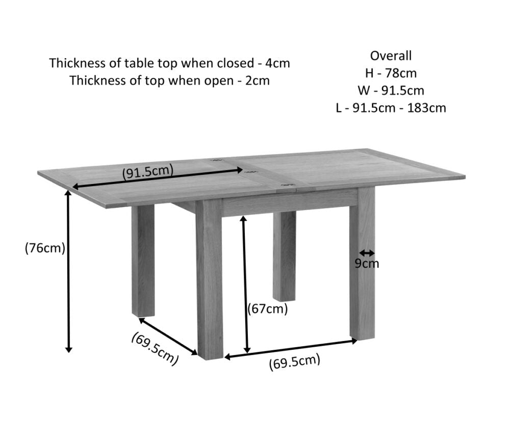 This flip top dining table sits as a small square table when closed, but flips open and slides across the skirt to comfortably sit 6 people when open, lengthening from 91.5cm to an impressive 183cm.