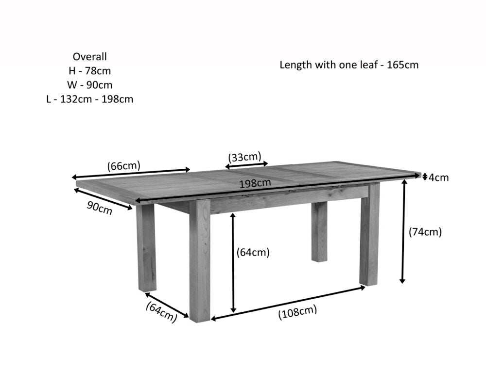 This table comfortably sits 6 people when extended from 132cm to 198cm. With a modern and clean design this table is the perfect place to entertain and bring the family together. This table extends via a central runner system and comes with two leaves (stored internally) which clip in to place, so you can extend using one or both for two extension size options (165cm or 198cm).