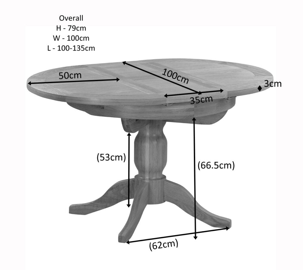 This elegant round to oval extending dining table features a stunning oak pedestal on four feet. And extends from 100cm to 140cm. With a handy butterfly extension leaf which stores inside the table, making this table super easy to extend. Comfortably seats 4-6 people.