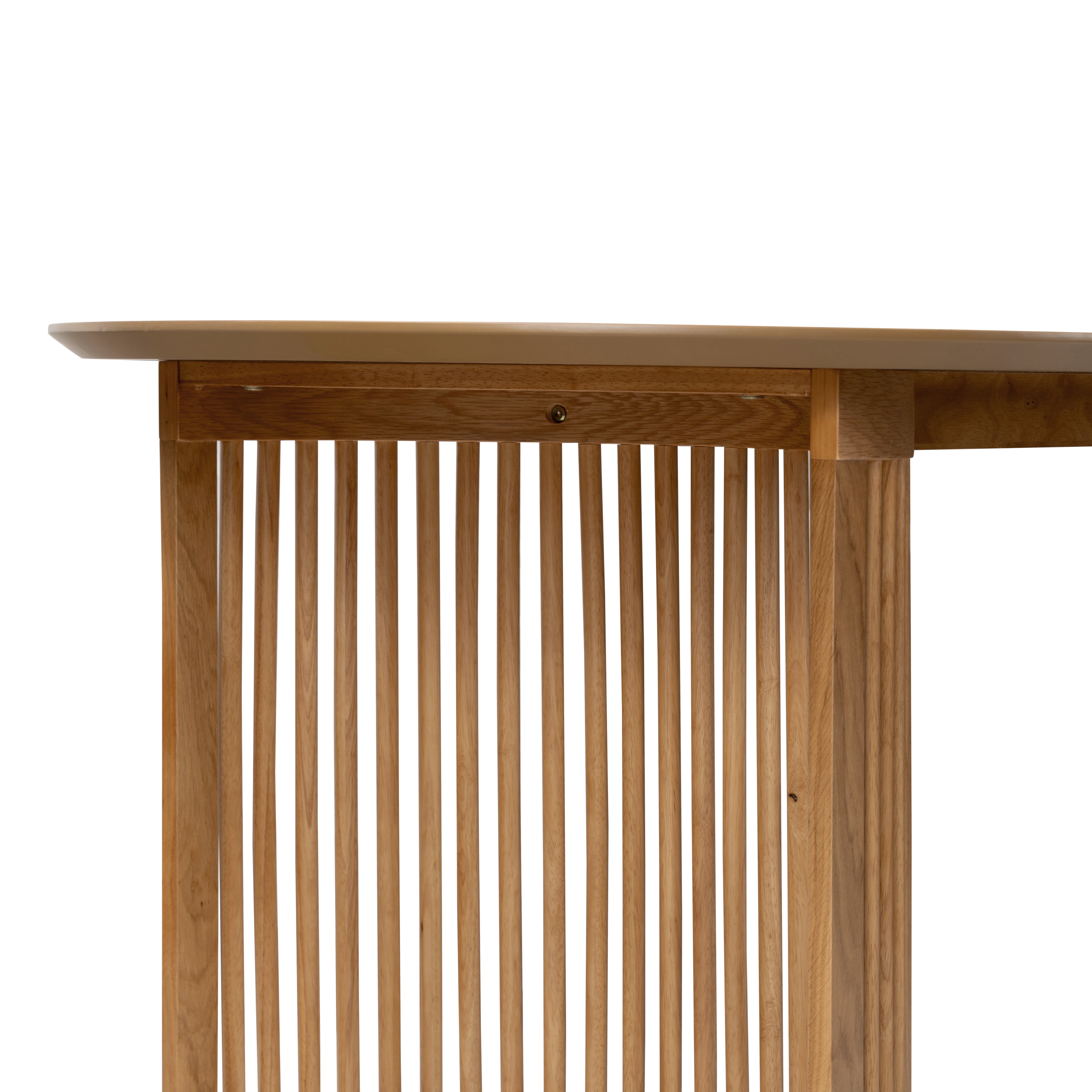 Expertly crafted, this Oval Slatted Dining Table boasts a beautiful design that will add elegance to any dining room. Its unique shape allows for more intimate conversations and creates a perfect setting for making memories with loved ones. Finished with precision, this table will be the centrepiece of any gathering.