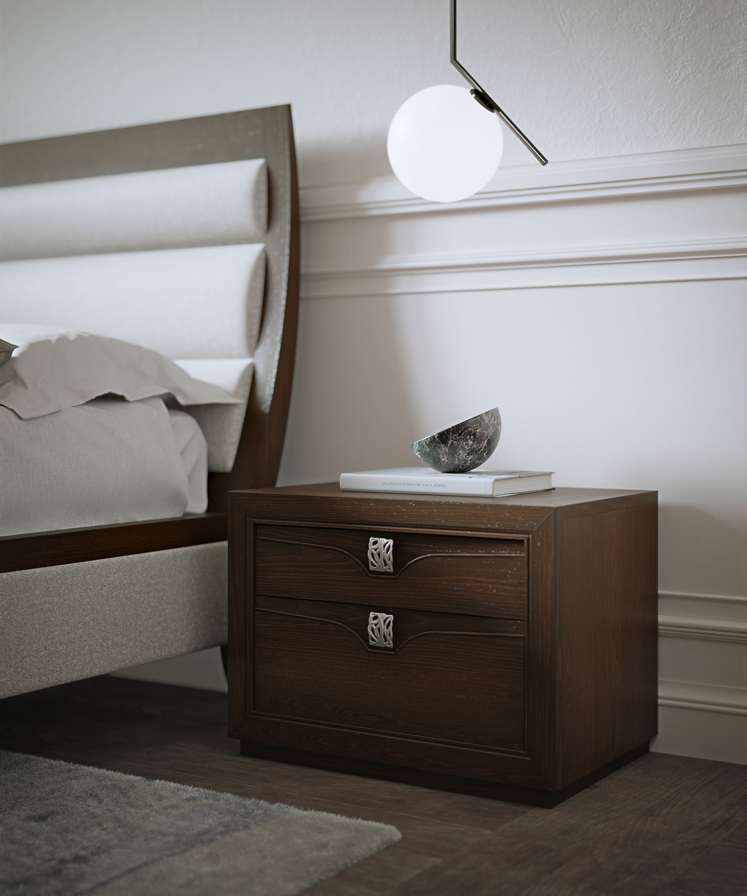 Expertly crafted in Italy, the Linda Bedside Table seamlessly blends classic design with contemporary functionality. The luxury bedside features a soft close mechanism, ensuring ease in use, while the engraved handles add a unique touch. Perfect for both practical and aesthetic purposes.