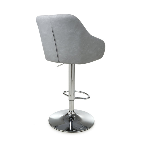 An alluringly curved modern bar stool, upholstered in leather effect fabric. The wrap-around seat features slim armrests with eye catching zigzag stitching. The gas lift mechanism adjusts the stool height from 93cm to 114cm via an under seat handle. The seat also easily swivels a full 360 degrees.